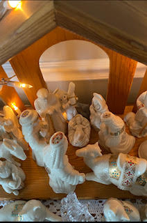 My picture above is of the nativity set in our home- an aerial view, so to speak- and I love how all the people and creatures are crowded together as they made room for the Magi and their patient camel to come right up to present their gifts to the Child, but weren’t quite ready to leave themselves. Epiphany calls us to take our clues from these faithful worshippers and steadfast travelers from a faraway land, who allowed their wonder and amazement to so transform them that they were never the same again and could no longer safely take the familiar roads home.